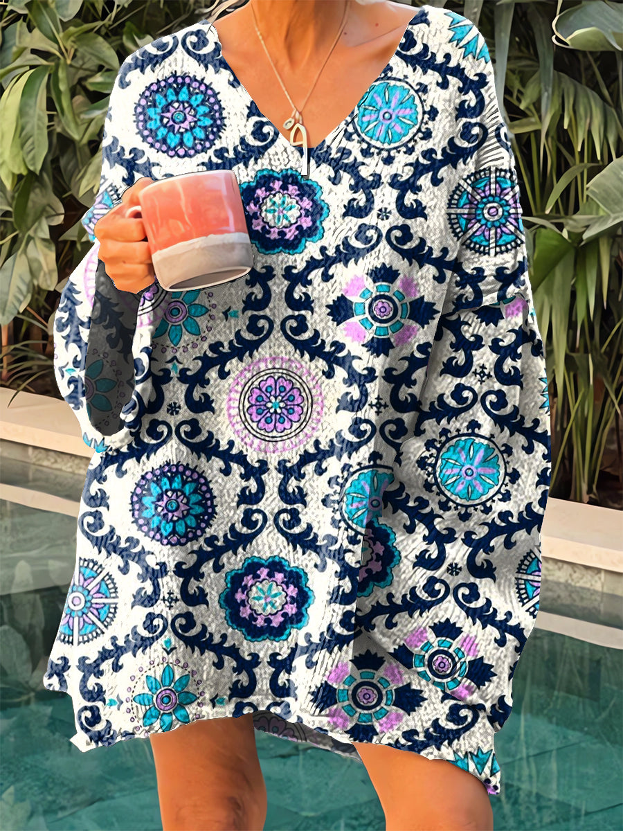 Жените реколта етнически геометричен печат v-врата пуловер
