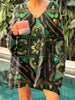 Жените v-neck черно и зелено печатни пуловер