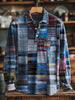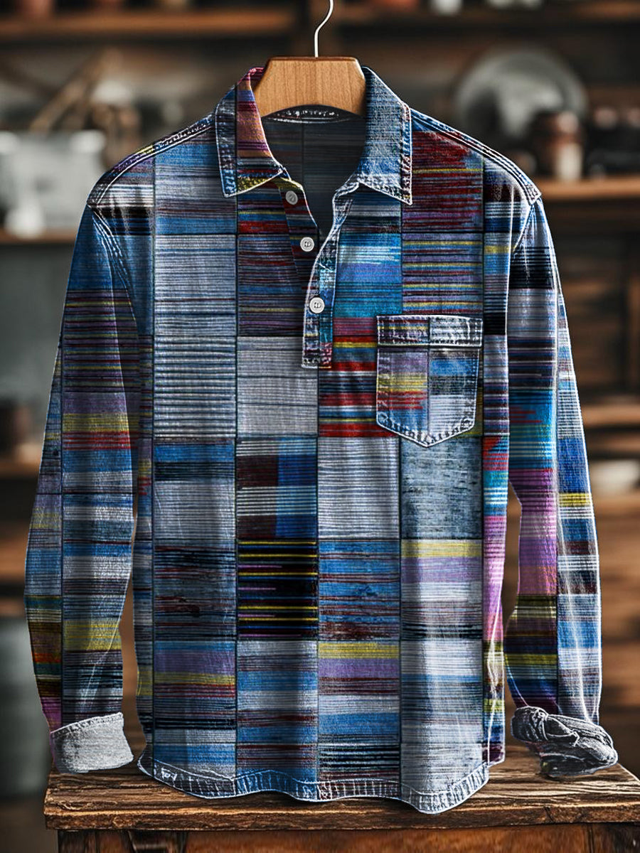 Изкуство ретро цвят линия карирана печат случайни дълги ръкави поло риза