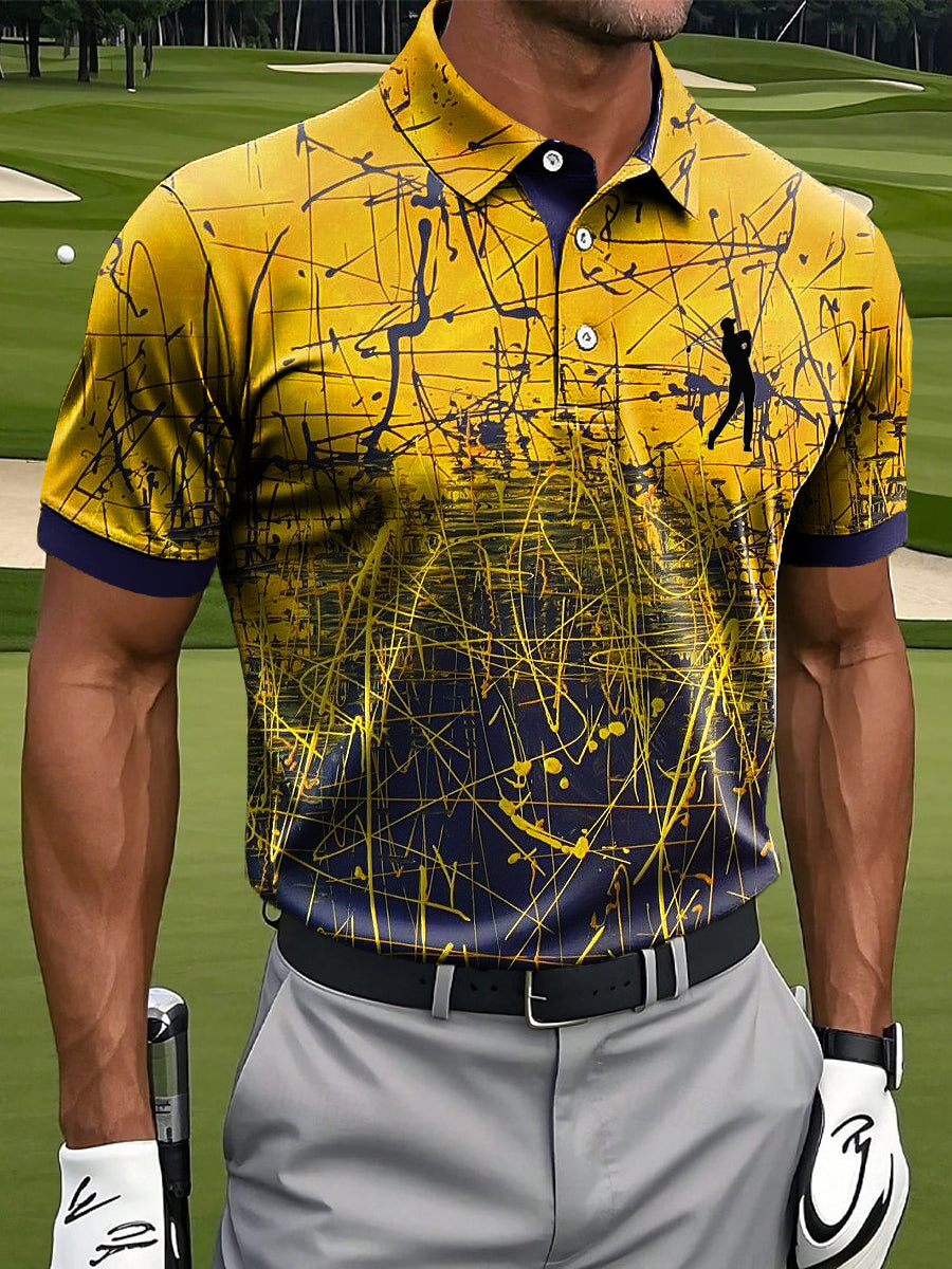 Мъжки абстрактна линия изкуство печат случайни бизнес поло риза