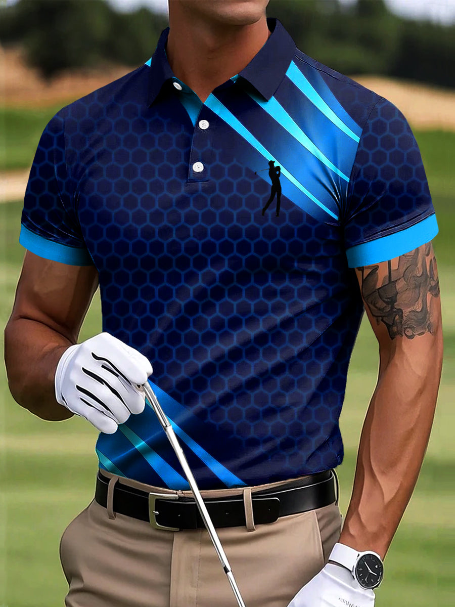 Мъжки голф градиент геометрични линии изкуство печат случайни бизнес поло риза