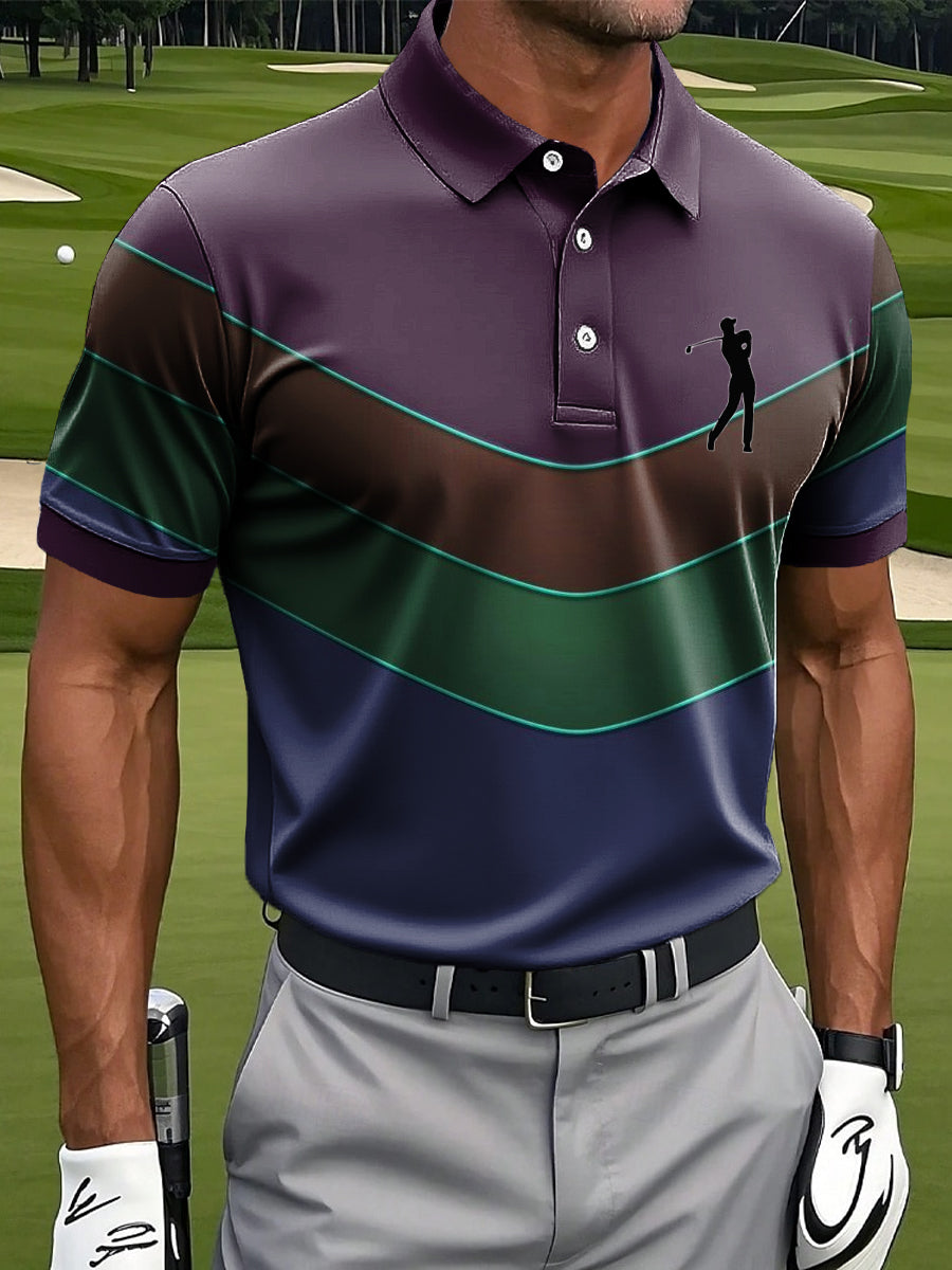 Мъжки реколта стил цветни райета изкуство печат случайни поло риза
