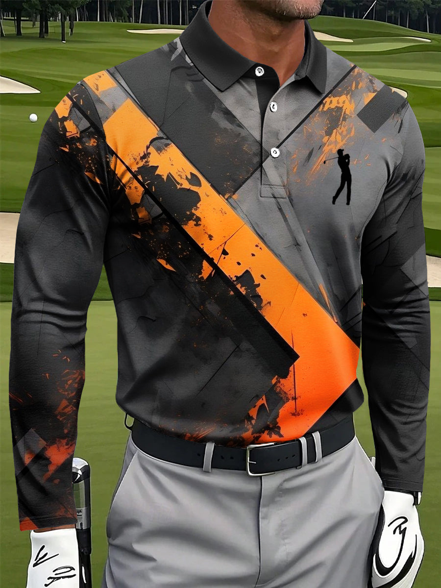 Мъжки ретро абстрактен геометричен печат случайни бизнес поло с дълги ръкави