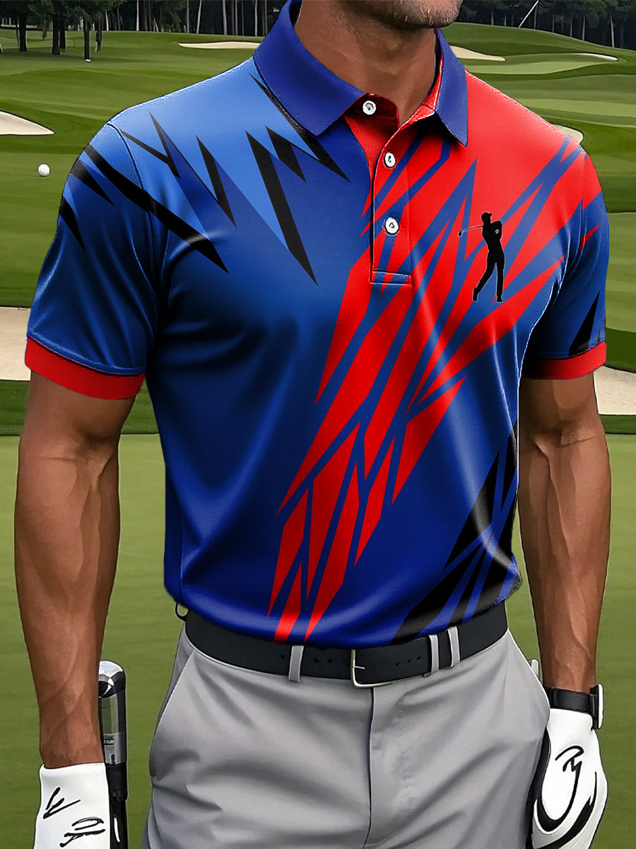 Мъжки ретро абстрактна геометрична изкуство печат случайни бизнес поло риза