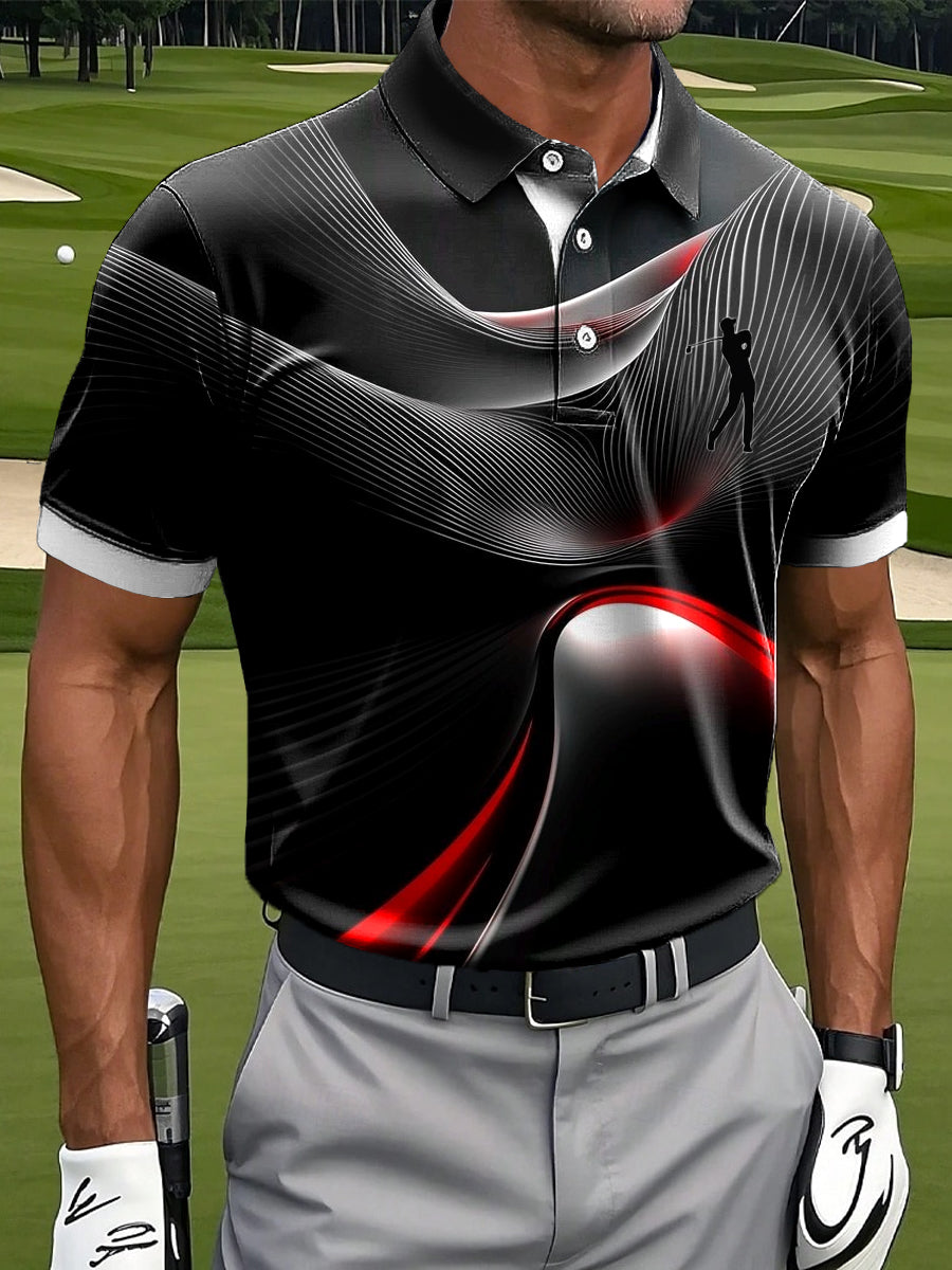 Мъжки ретро абстрактна линия изкуство печат случайни бизнес поло риза