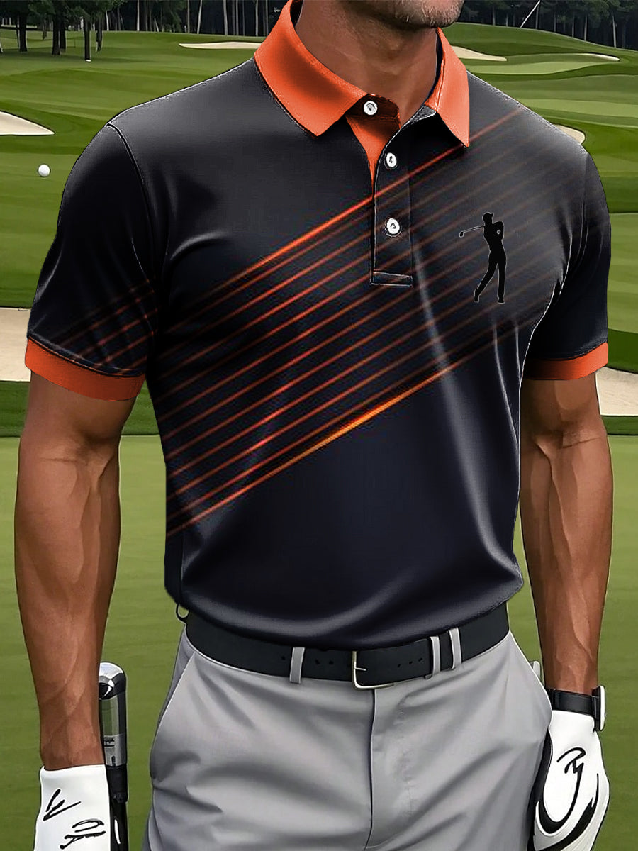 Мъжки ретро градиент линия изкуство печат случайни поло риза