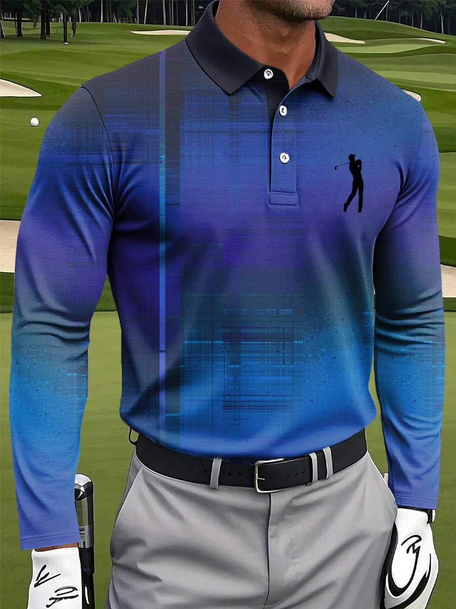 Мъжки ретро градиент текстура изкуство печат случайни дълги ръкави поло риза