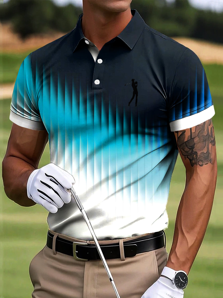 Мъжки ретро градиент цвят райета артистичен печат случайни поло риза