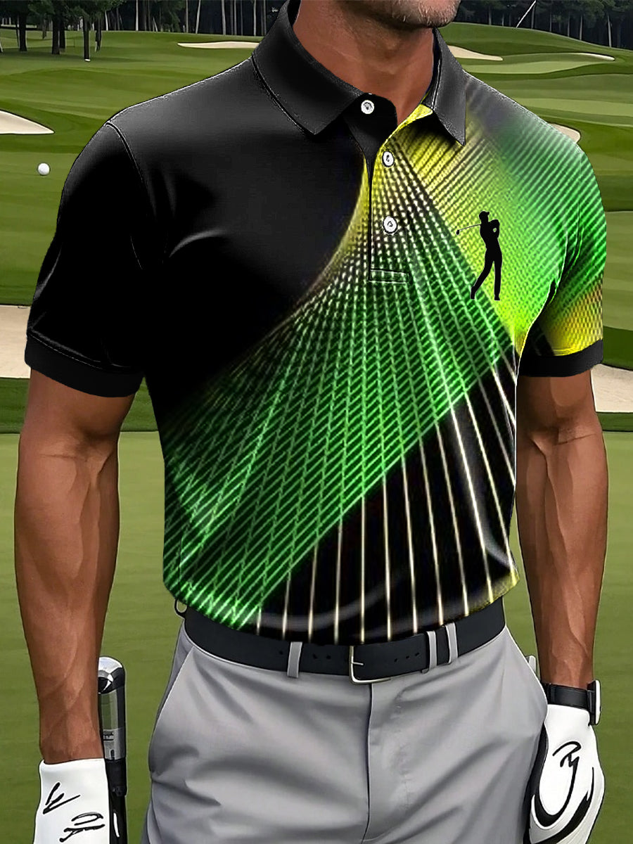 Мъжки ретро градиент цвят райета изкуство печат случайни бизнес поло риза
