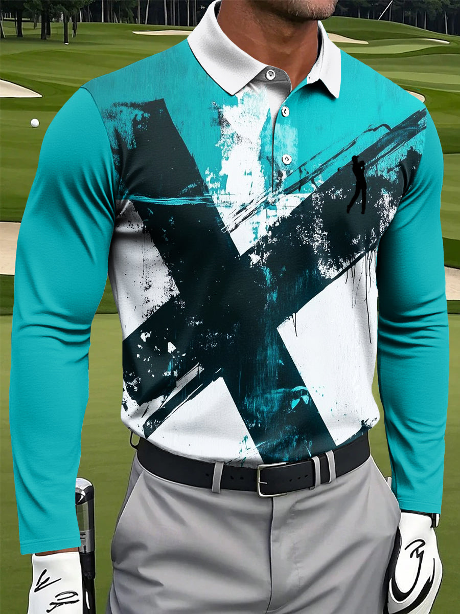 Мъжки ретро линия графити печат случайни бизнес с дълги ръкави поло риза