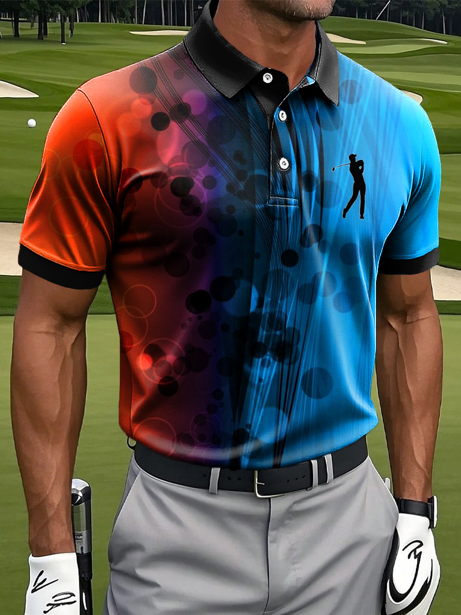 Мъжки ретро цветни пачуърк текстура изкуство печат случайни бизнес поло риза