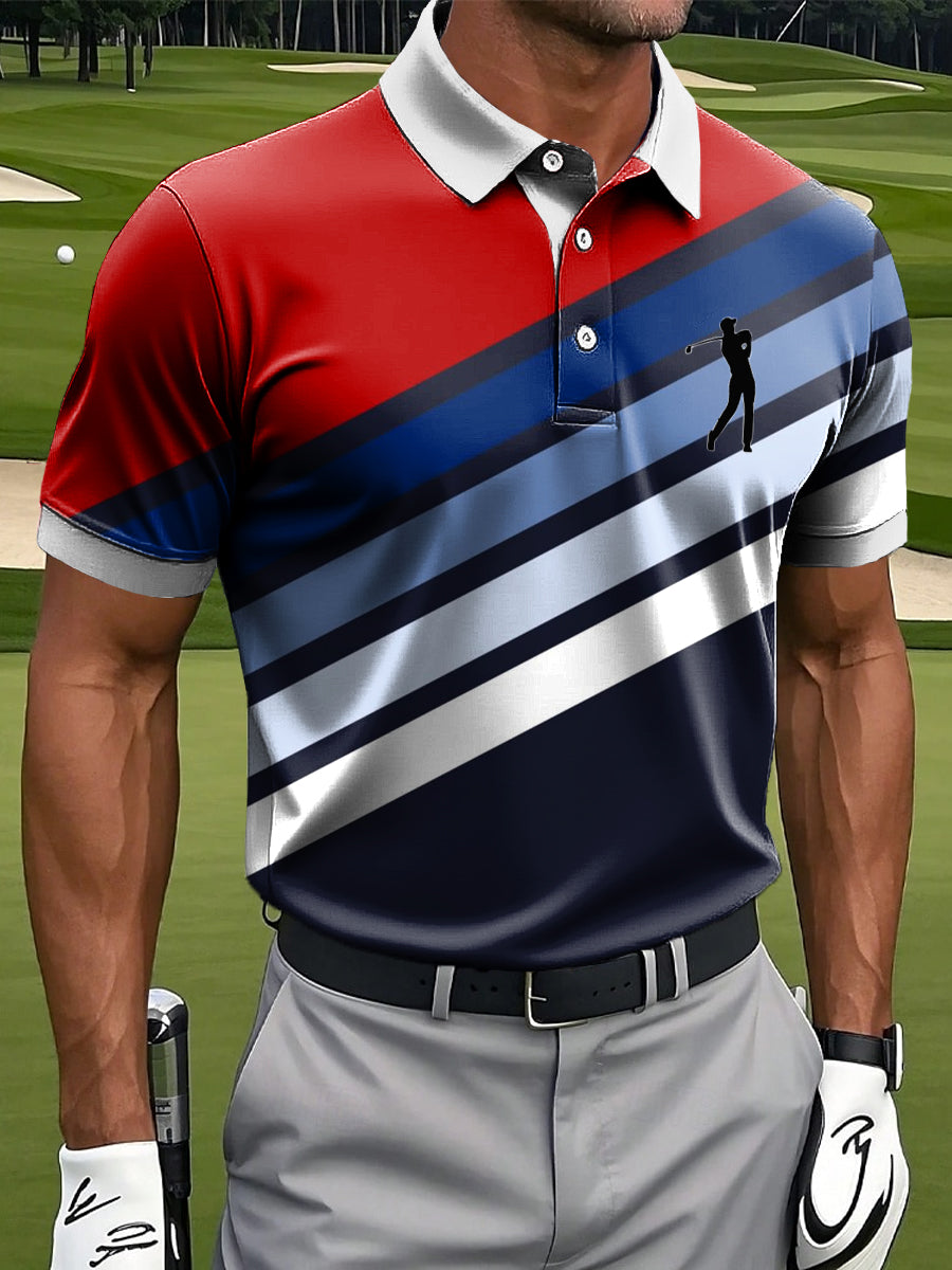 Мъжки ретро цветни райета артистичен печат случайни поло риза