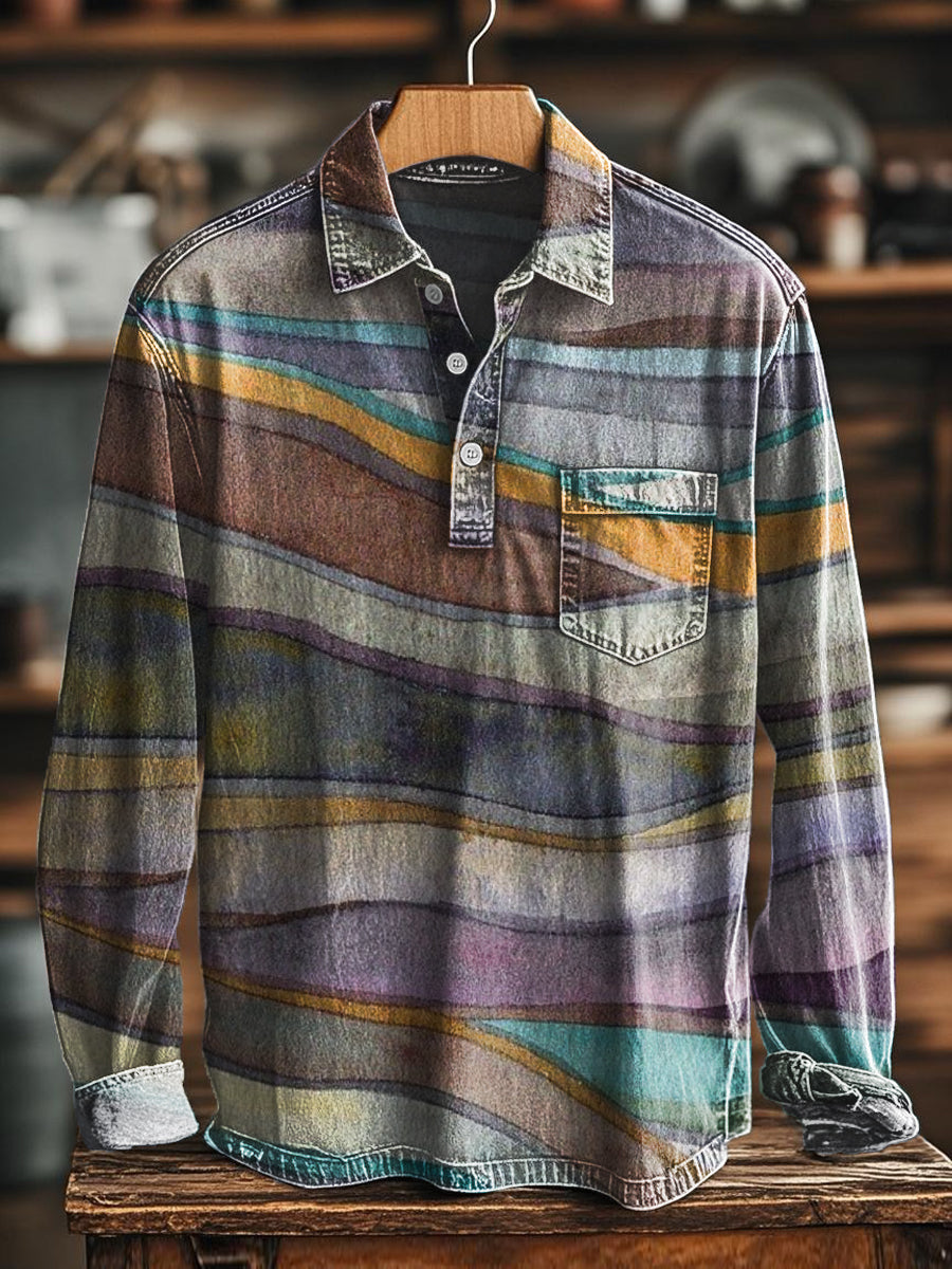 Реколта абстрактна линия изкуство печат случайни дълги ръкави поло риза