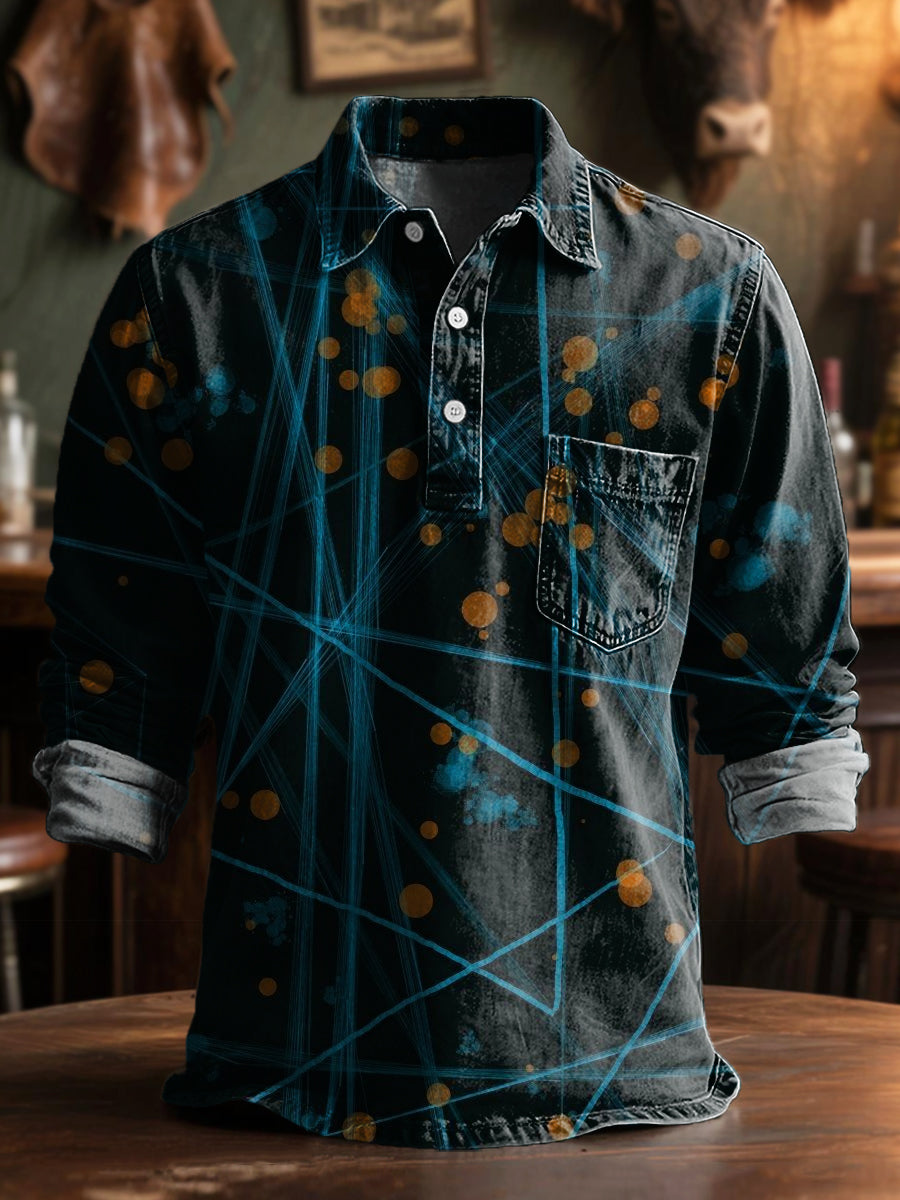 Реколта абстрактна линия светлина изкуство печат случайни дълги ръкави поло риза