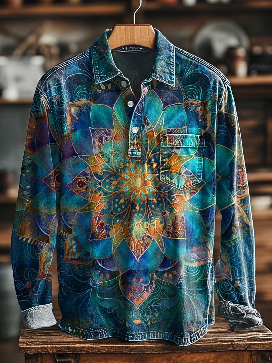 Реколта абстрактни mandala изкуство печат случайни дълги ръкави поло риза