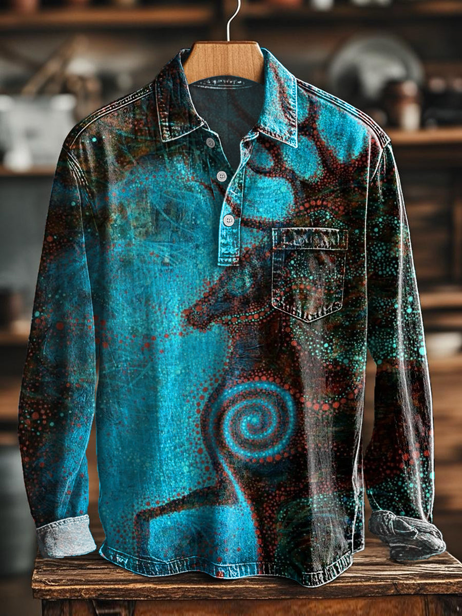 Реколта абстрактно изкуство лок печат случайни дълги ръкави поло риза