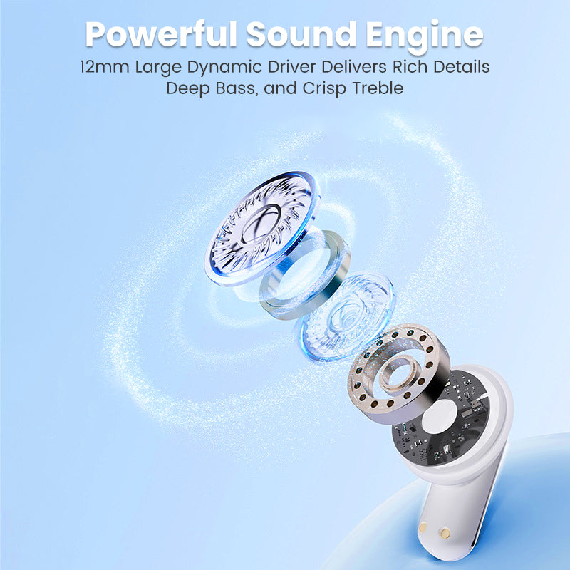 ИМЕРСИВЕН СТЕРЕО ЗВУК: Чуйте всеки детайл с големите 12-милиметрови динамични драйвери. Тази конфигурация осигурява богат бас, кристални високи честоти и широка звукова сцена, създавайки потапящо аудио изживяване за цялата ви музика и медии.