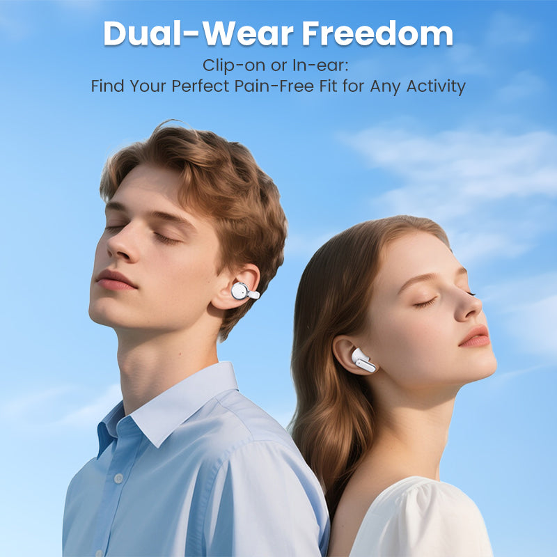 СЛУШАЛКИ С ДВА СТИЛА В ЕДИН КУФАРЧЕК: Получете най-доброто от двата свята с дизайн за поставяне в ухото и за закрепване на ухото. Изберете идеалното решение за всяка дейност, независимо дали се нуждаете от сигурна изолация за тренировки или отворено удобство за ежедневно слушане.