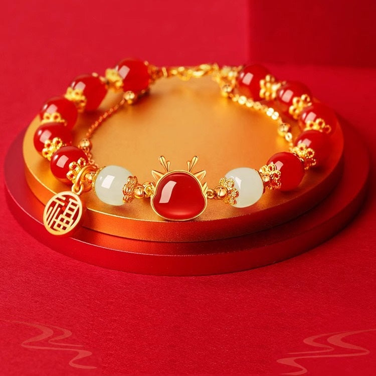 1×Изкуствен ахат Дракон Златна гривна за късмет