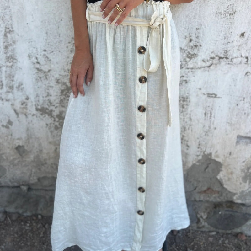 Съдържание на опаковката - 1×дълга пола с копчета отпред и колан
