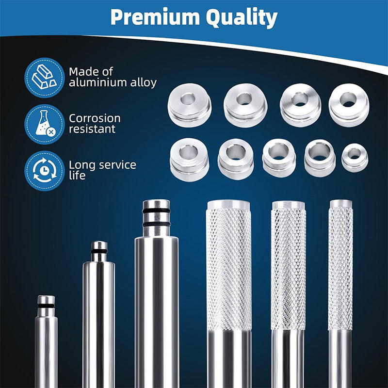 ПРЕЦИЗНО ПРОЕКТИРАН ЗА ЛЕСНИ РЕМОНТИ: Проектиран с мисъл за автомобилните ентусиасти и професионалисти, този комплект инструменти осигурява безпроблемно монтиране и демонтиране на лагери. Прецизно изработената конструкция от алуминиева сплав гарантира издръжливост и надеждност, което прави дори и най-трудните задачи лесни за изпълнение.