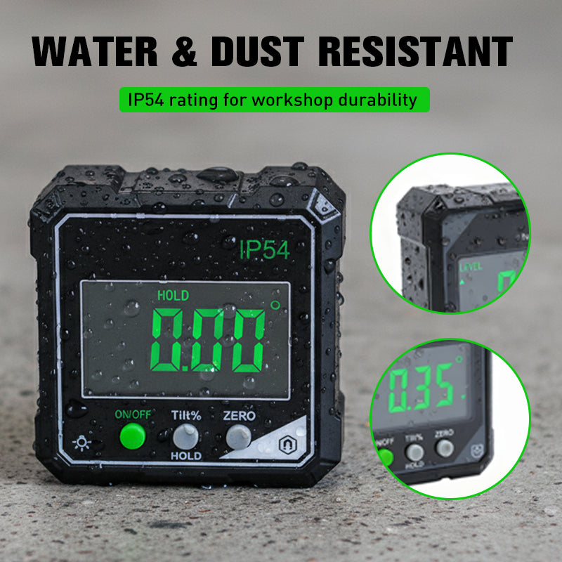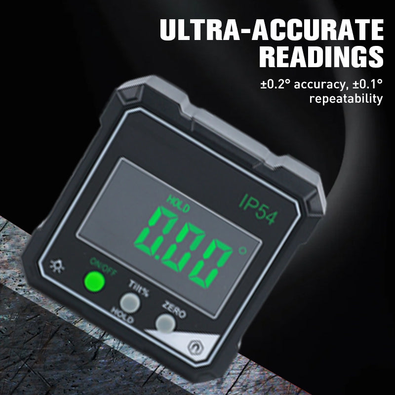 ВИСОКОТОЧНИ ИЗМЕРВАНИЯ НА ЪГЪЛИ: Насладете се на ултраточни измервания с точност ±0,2° и разделителна способност 0,05°. Повторяемостта ±0,1° гарантира постоянно надеждни резултати при настройка на машини, дървообработване и критични задачи по изравняване.