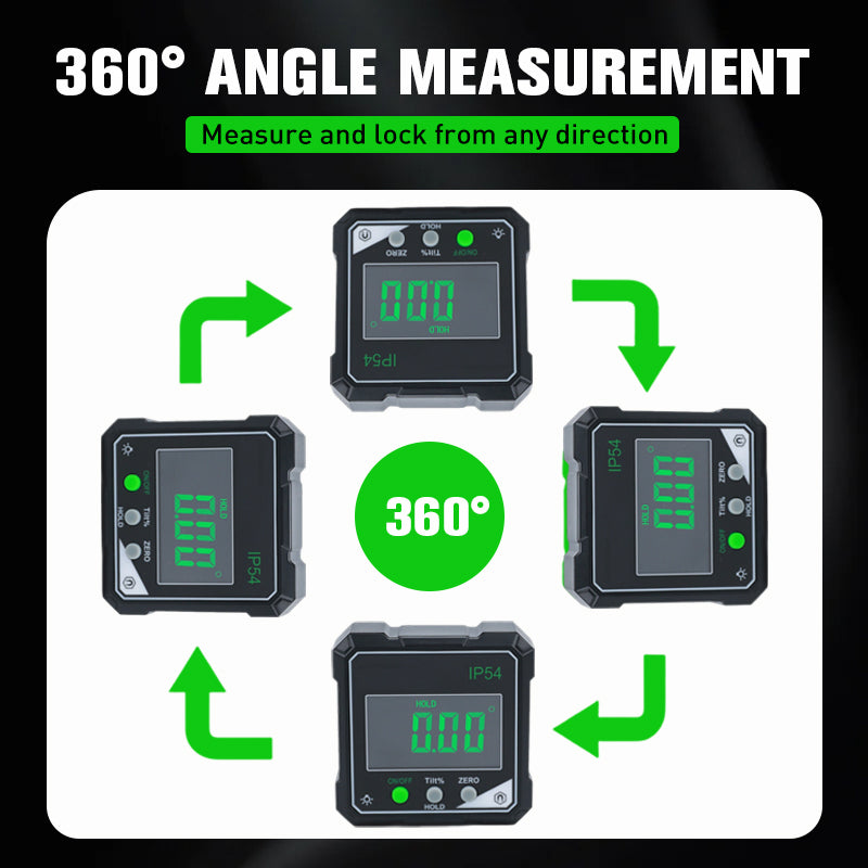 УНИВЕРСАЛНО 360-ГРАДУСНО ИЗМЕРВАНЕ: Измервайте ъгли във всяка посока с пълна 360° възможност. Зафиксирайте показанията на екрана за неудобни ъгли, което улеснява прегледа, записването и прецизното подреждане.