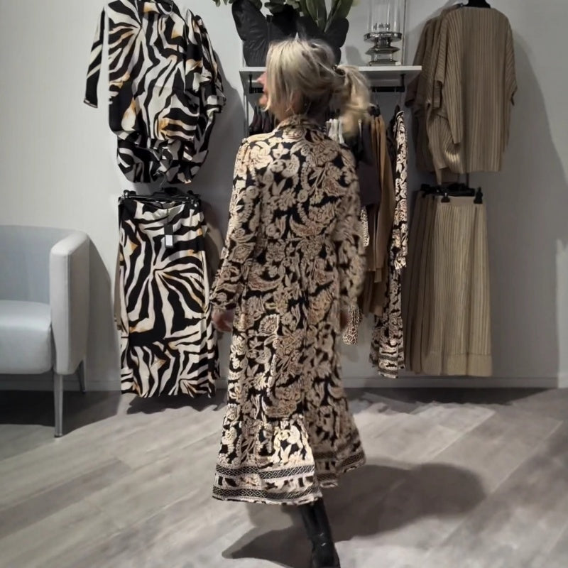 СТИЛНИ ПРИНТОВЕ: Изберете от разнообразие от смели и привличащи погледа принтове. Ярките мотиви придават цвят, което прави тази рокля идеална за неформални излизания или по-официални събития.