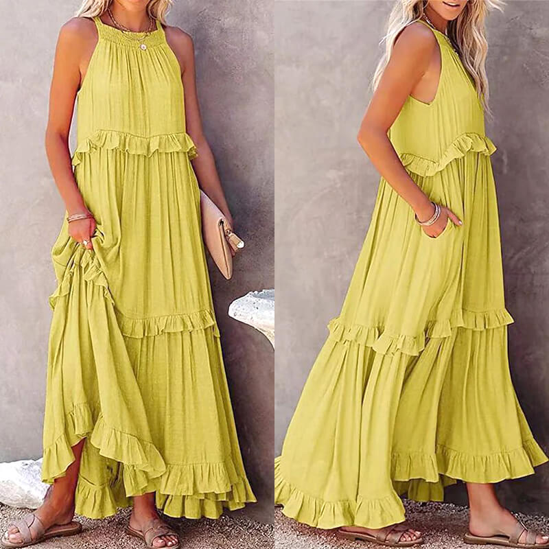 Лесно съчетавайте тази семпла и секси слънчева рокля с любимите си токчета или сандали, слънчеви очила, шапки, колие, кламери, кожено яке и палто за изящен и женствен вид, наслаждавайте се на пътуванията и цветния си живот.