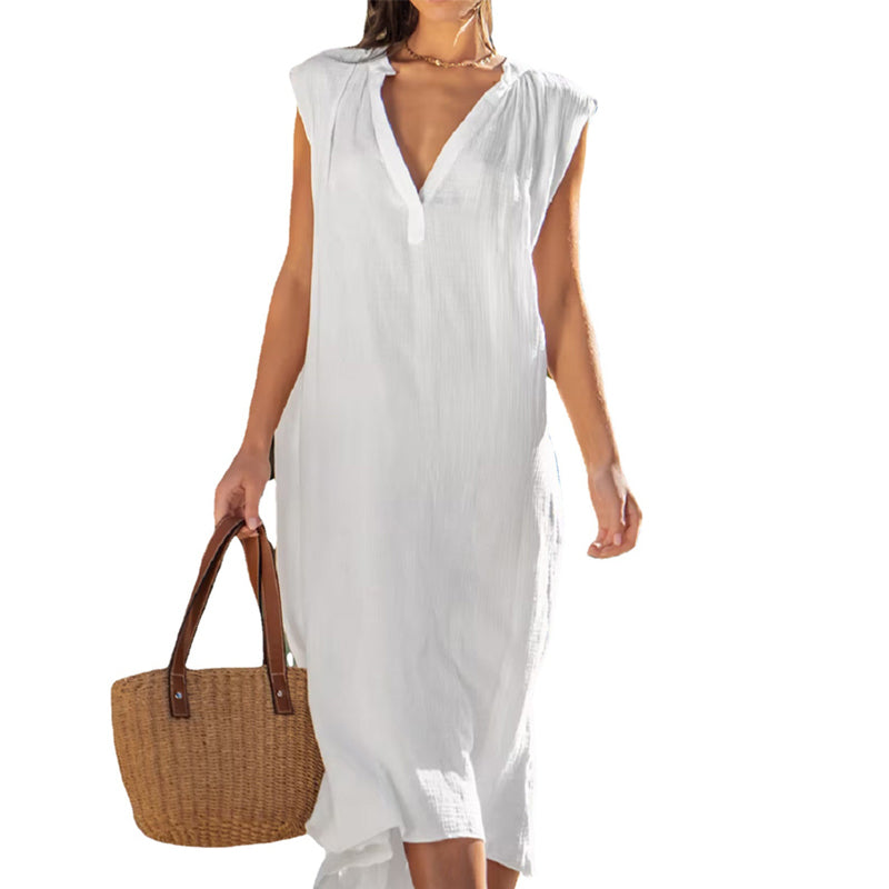 Дизайнерски класни без ръкави: Останете хладни и удобни в горещо време. Дизайнът без ръкави прави тази рокля идеална за слънчеви дни, плажни ваканции, ежедневно облекло или външно облекло в по -студени сезони.