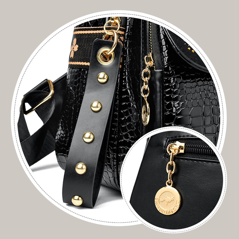 ПРЕНОСЕТЕ ЕСТЕСТВЕНИТЕ ДАННИ В СТИЛ С БЛЕСТЯЩИ АКЦЕНТИ ОТ РИНЕСТИ - Елегантният геометричен принт и блестящите детайли от кристали издигат ежедневния ви вид, превръщайки практичната раница в модно изявление. Перфектна за работа, пътуване или вечери навън, тази чанта преминава без усилие от ден към вечер, като запазва луксозната си естетика.