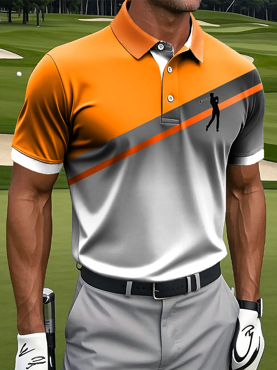 Мъжки ретро цвят блок изкуство печат случайни бизнес поло риза