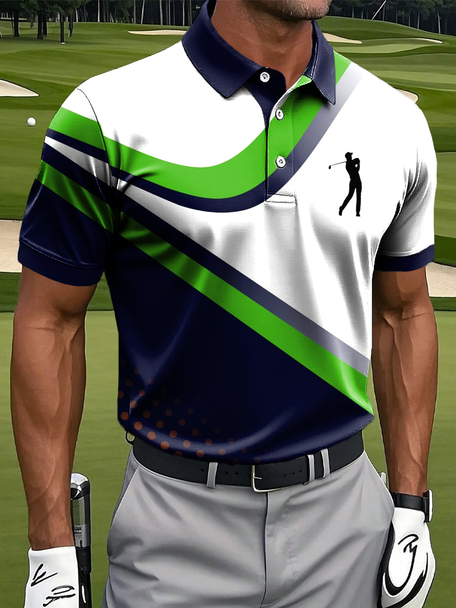 Мъжки ретро неправилна линия цвят блок изкуство печат случайни бизнес поло риза