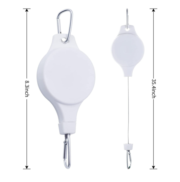 Прибираща се закачалка за растения: Във вътрешността има издръжлива лента за окачване, като максималната дължина на разтягане може да бъде до 90 см (35,43 инча). С тази разтегателна закачалка можете да вдигнете или спуснете растението много бързо и да го фиксирате във всяка желана позиция. Това прави поливането и подхранването много по-лесно и удобно, тъй като вече не е необходимо да се изкачвате по стълби.