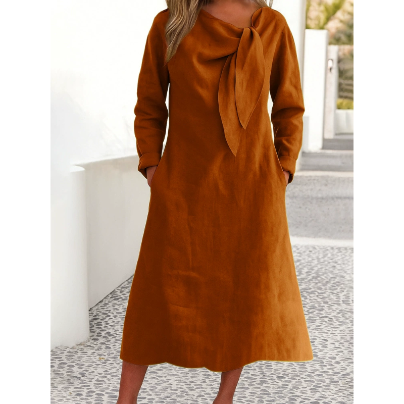 1 * Едноцветна рокля с дълъг ръкав и обло деколте