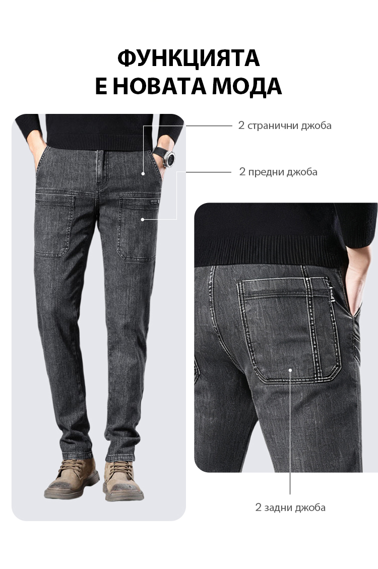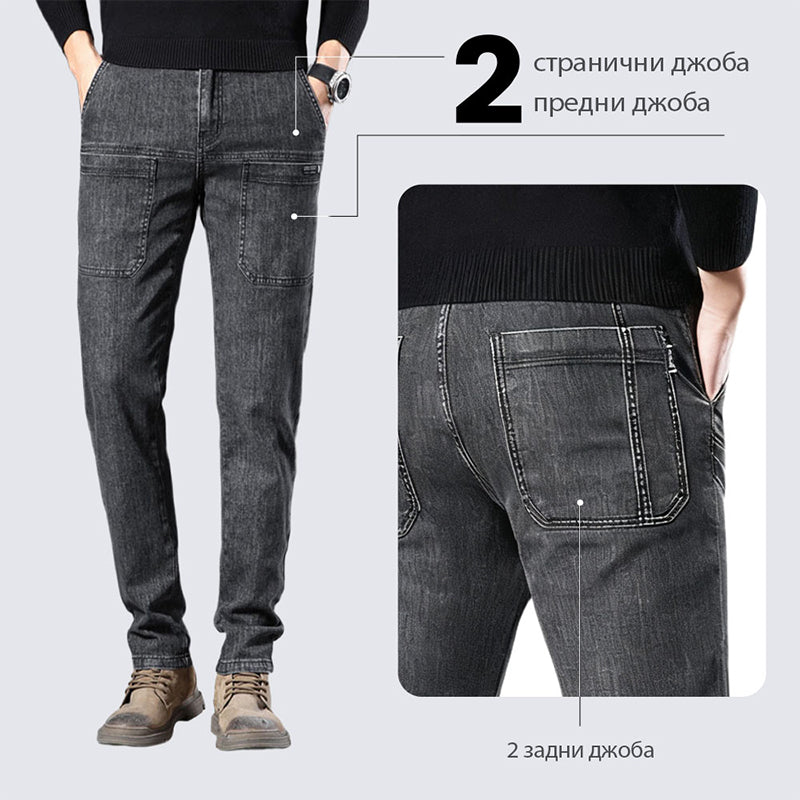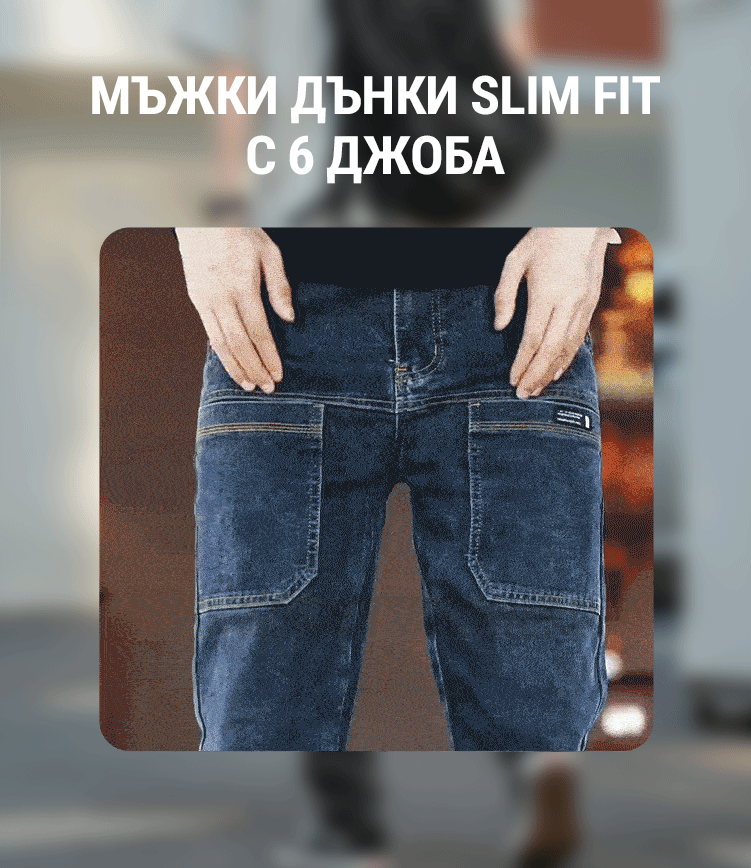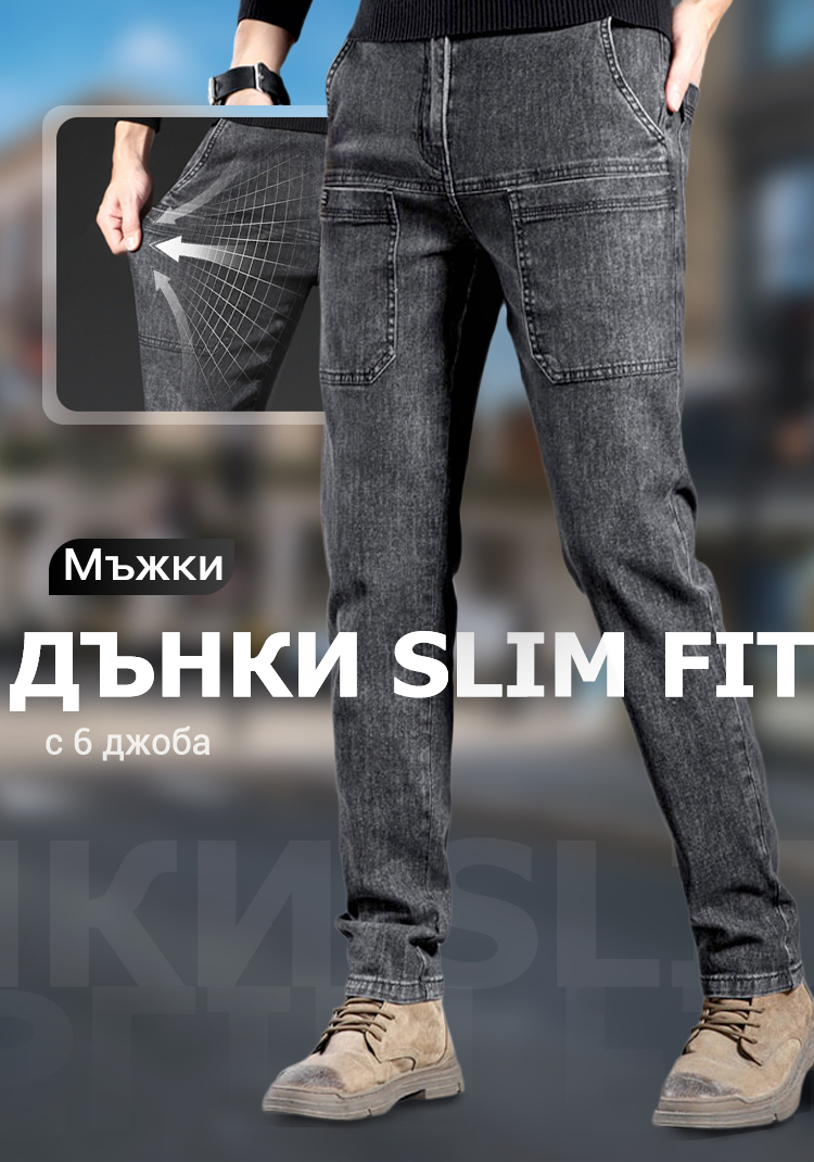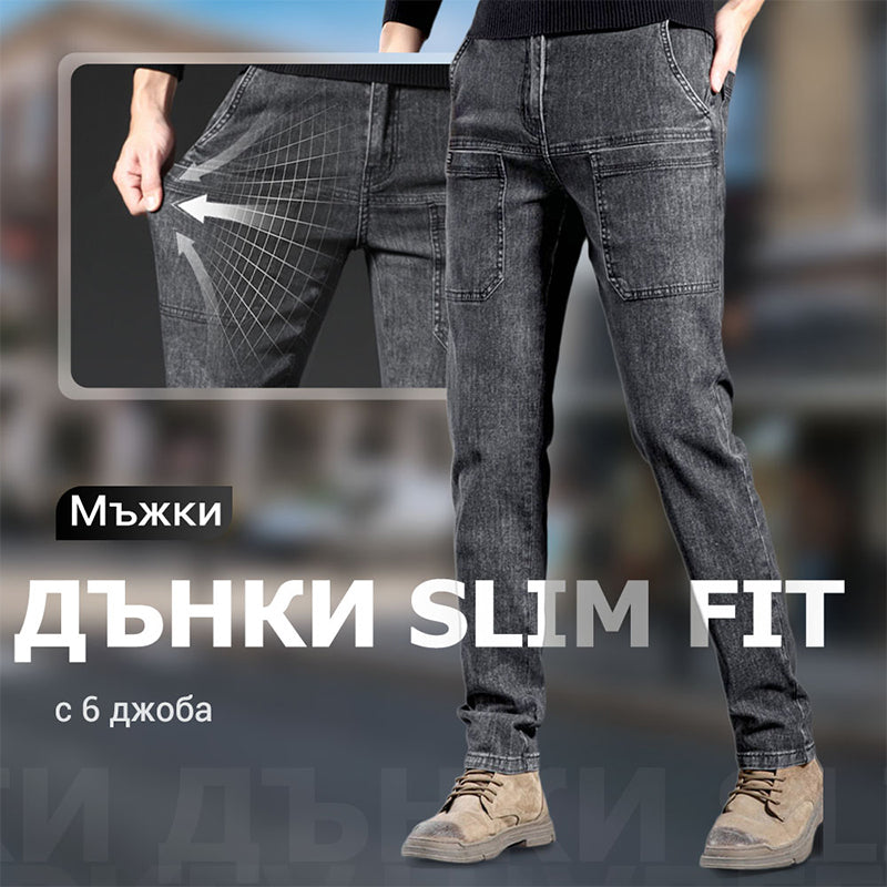 Мъжки дънки с 6 джоба и тясна кройка+Колан