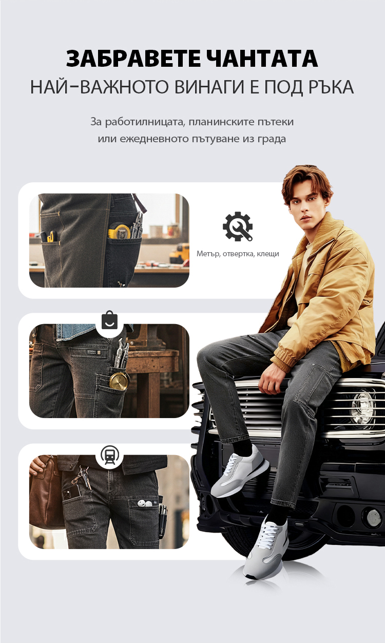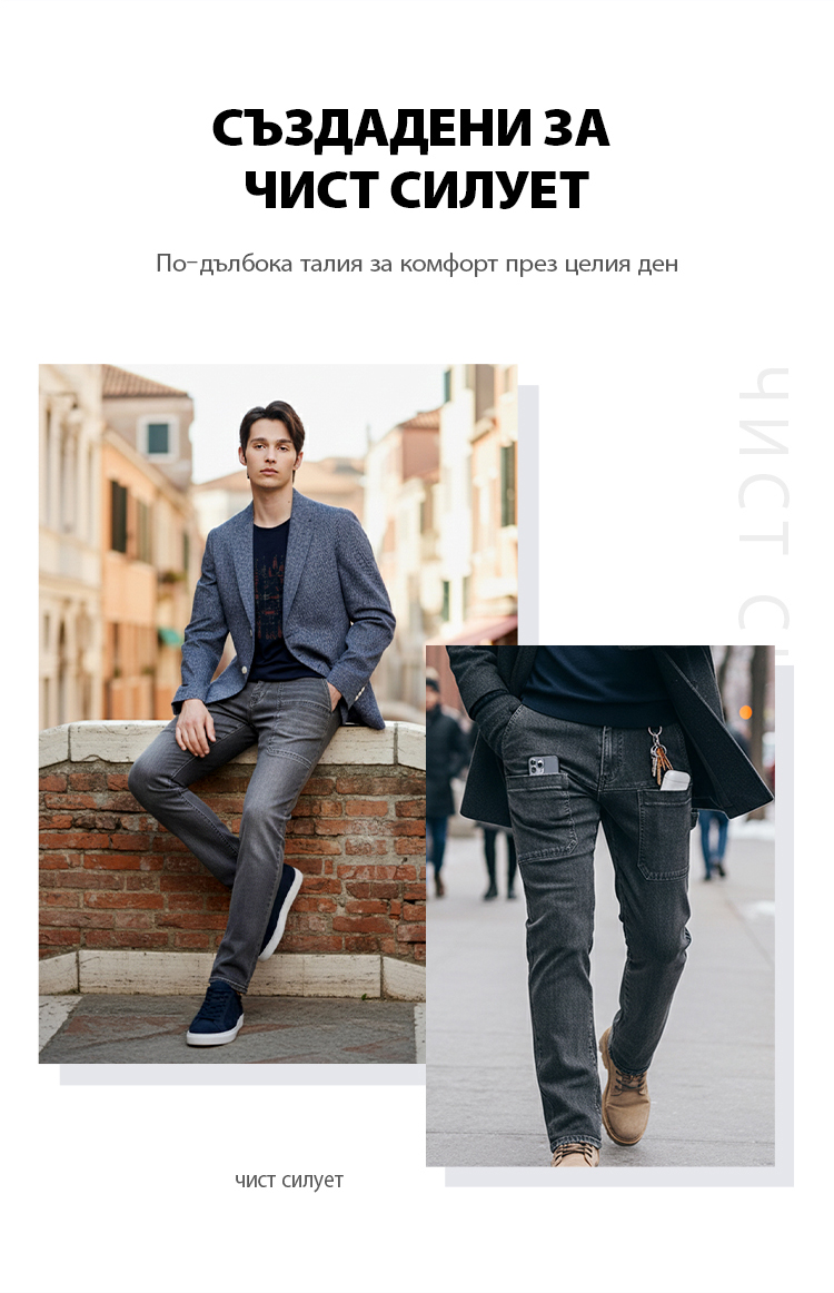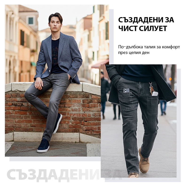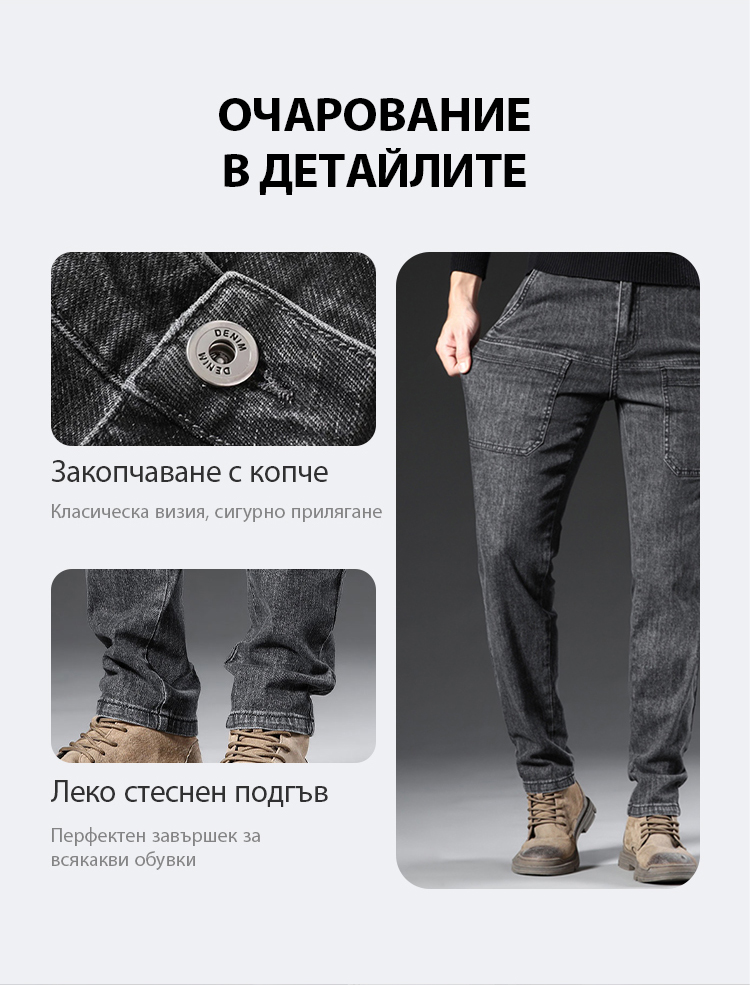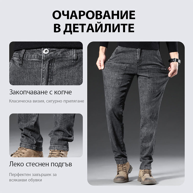 Мъжки дънки с 6 джоба и тясна кройка+Колан