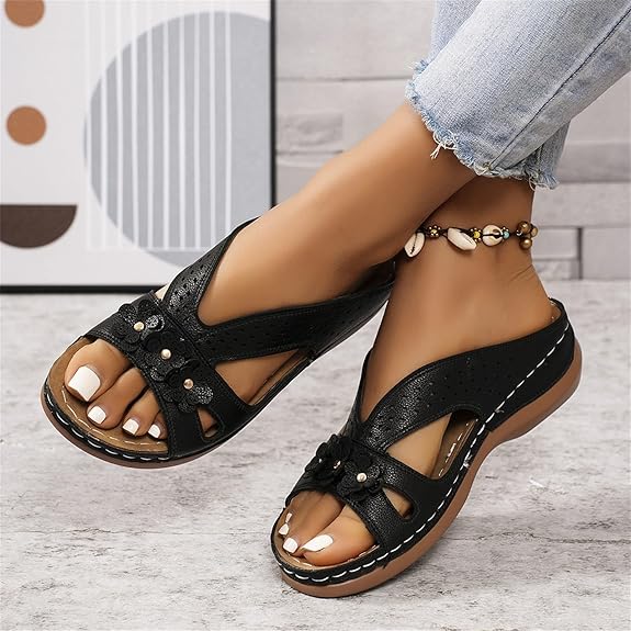 ЖИВИ ЦВЕТОВЕ, УНИВЕРСАЛНО ПОСТАВЯНЕ - Изберете от 6 универсални нюанса (черно, сиво, розово, кафяво, синьо, бяло), за да подхождат на всеки гардероб. Предлагат се в размери 36-42, за да паснат по мярка. Облечете се или не - тези сандали придават флорално излъчване на дънките, роклите или ваканционните визии.
