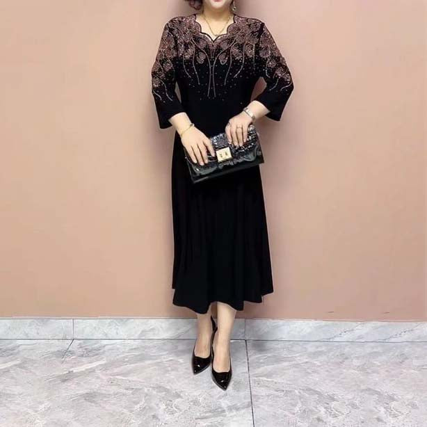 Деколтето на роклята е с красив дизайн и е украсено с деликатни блестящи елементи, които придават блясък и визуален интерес на цялостния дизайн.