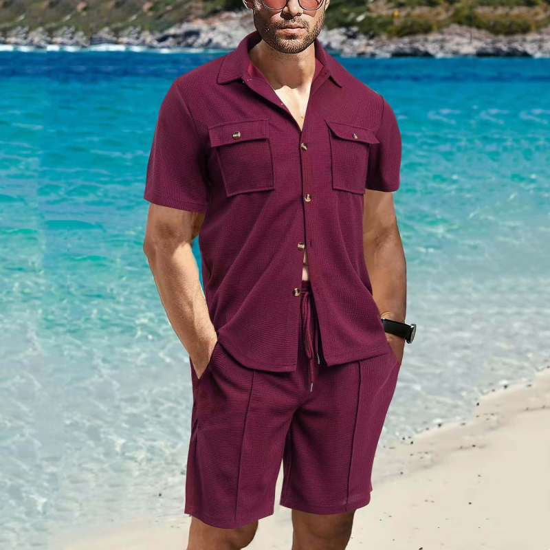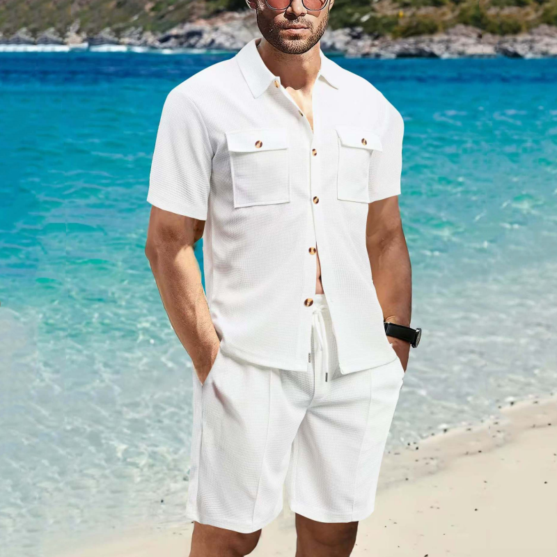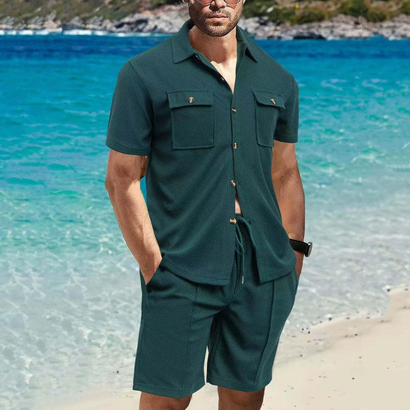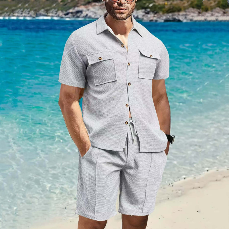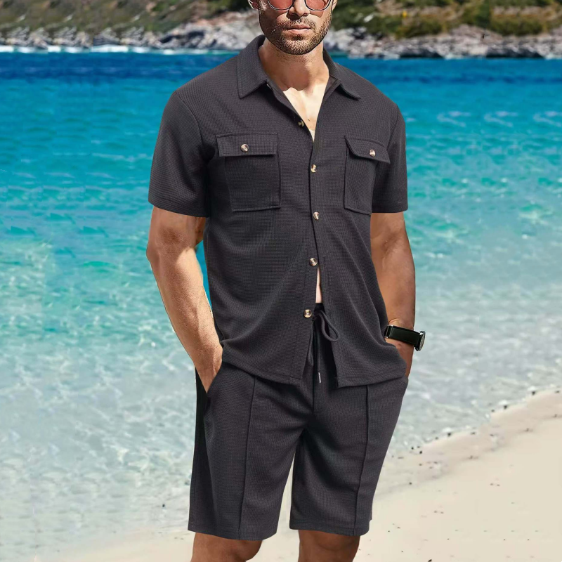 Пакетът включва: 1 * Мъжки ризи с къс ръкав & Къси панталони комплект от 2 части