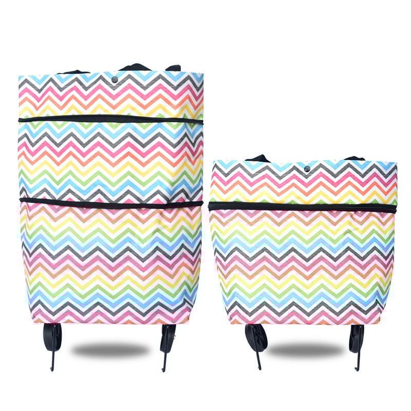 Пазарска чанта, която може да се разширява или свива с цип. Може да се използва ежедневно за пазаруване, пътуване, екскурзии или носене на рамо, а благодарение на двете си колела е много практична.