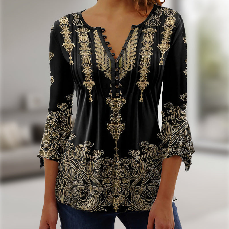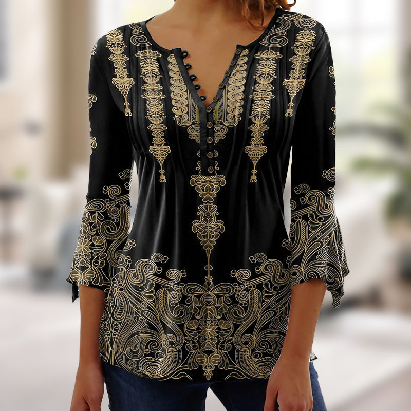 РАЗШИРЕНИ РЪКАВИ – Добавете движение и чар. Деликатните разширени ръкави придават лек, бохемски привкус на блузата. Те не само подобряват дишането и комфорта, но и създават меко движение, докато вървите. Дизайнът с широки ръкави добавя комфорт за ежедневно носене, като същевременно запазва структурата и елегантността.