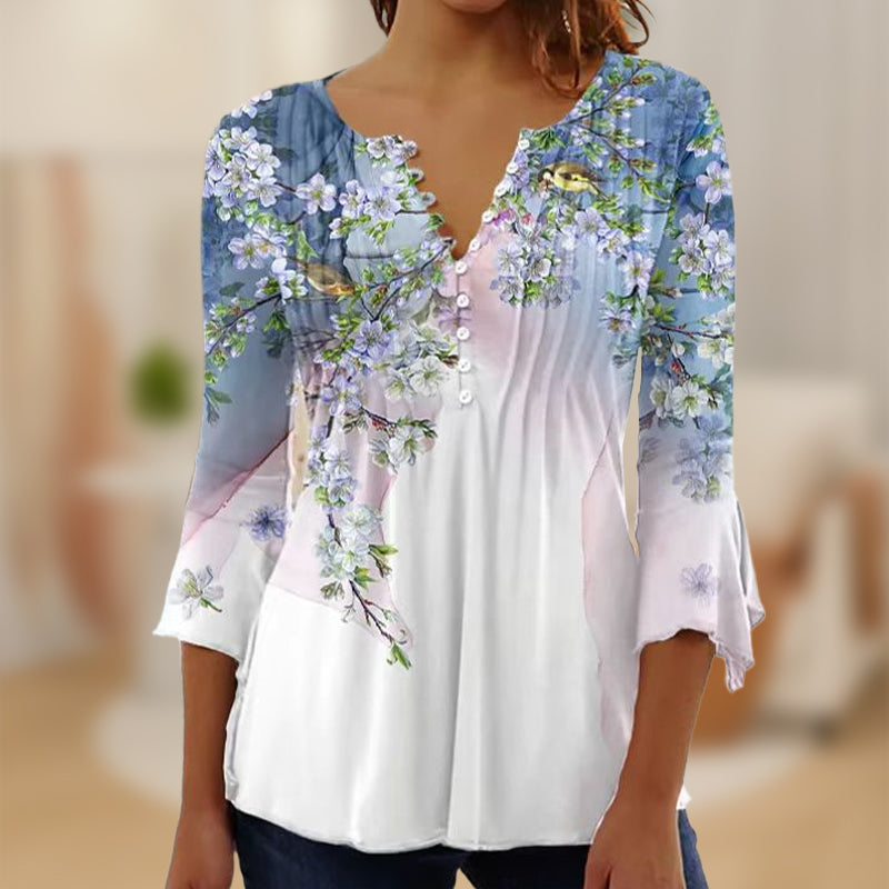 ЦВЕТЕН ПРИНТ – Насладете се на безпроблемна елегантност. Мекият цветен принт придава свеж, романтичен чар на гардероба ви. Независимо дали се обличате за небрежна разходка или за брънч, деликатният принт добавя нотка на сезонен стил, без да претоварва визията ви. Дизайнът е създаден, за да подхожда на всички възрасти и тонове на кожата с дискретна красота.