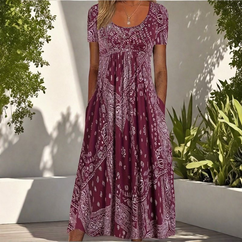 ЛАСКАТЕЛНА СВОБОДНА КРОЯ – Тази рокля ласкае всяка форма на тялото, като същевременно предлага изключителен комфорт. Фините плисета на талията добавят нотка елегантност и създават ефект на изтъняване, подчертавайки естествените ви извивки, без да се чувствате ограничаващи.