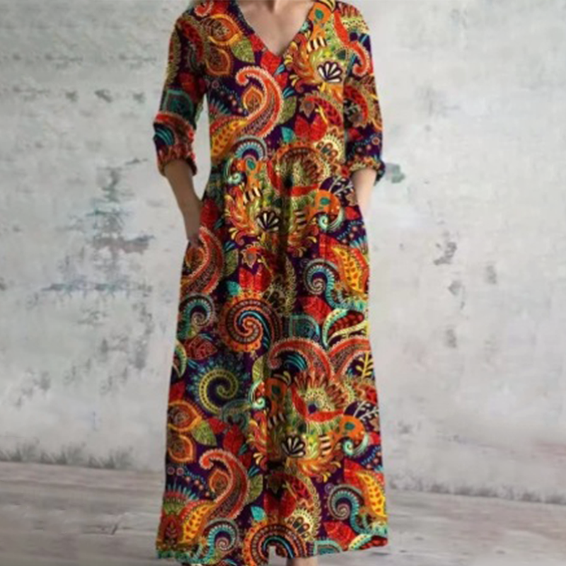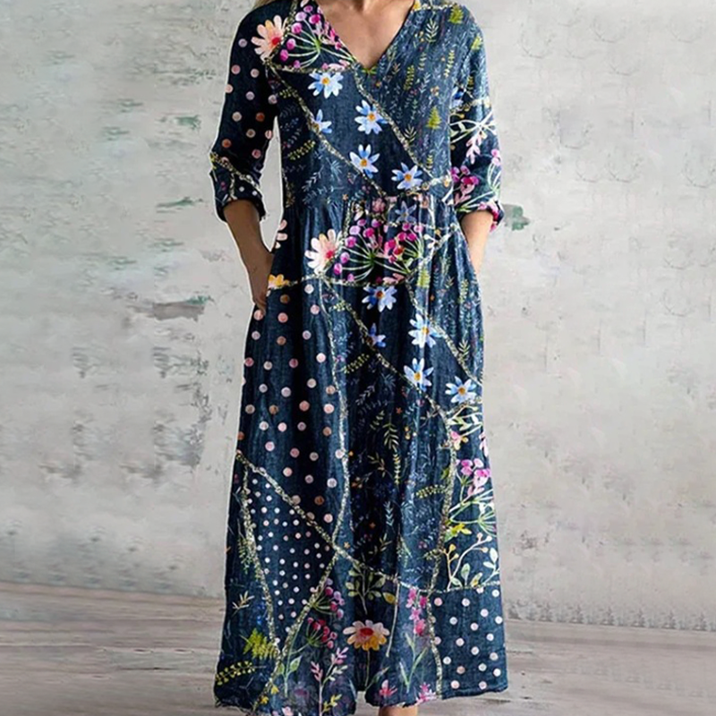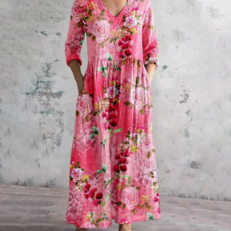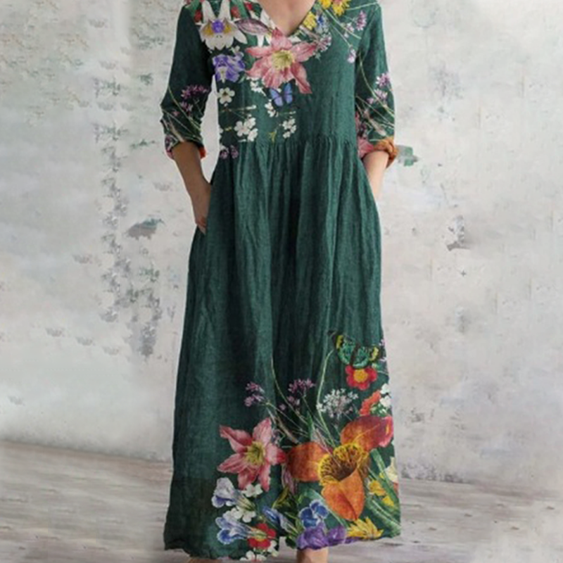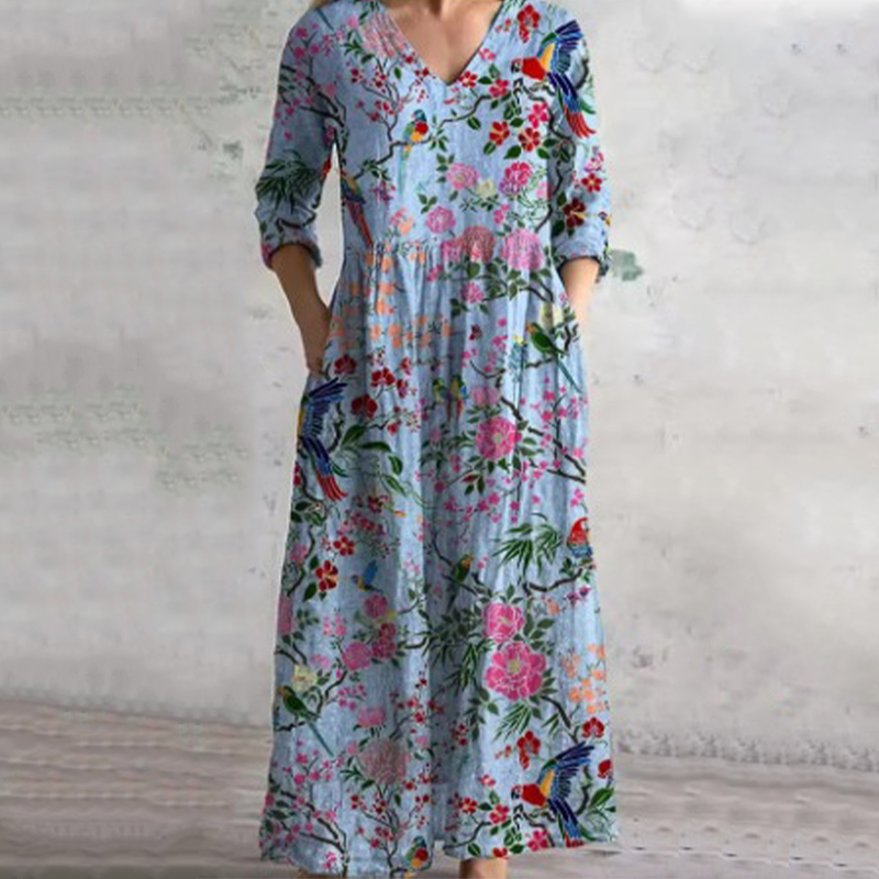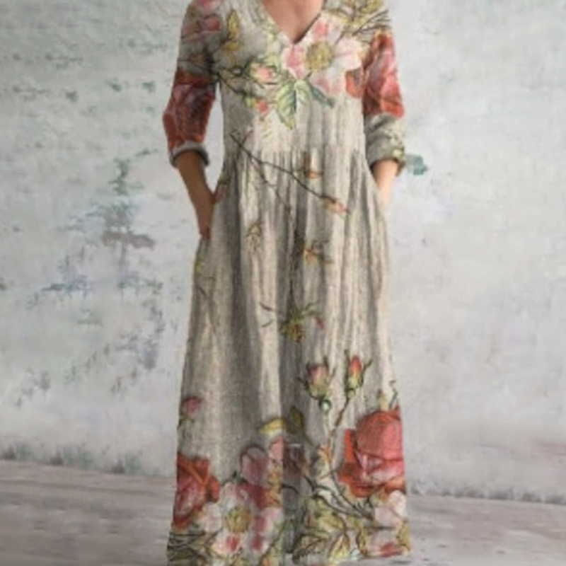 Пакетът включва: 1×елегантна рокля с V-образно деколте и флорален мотив