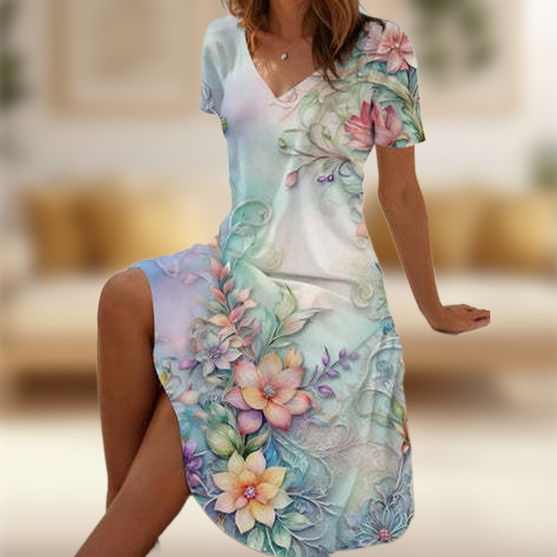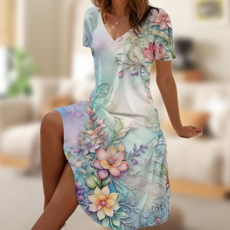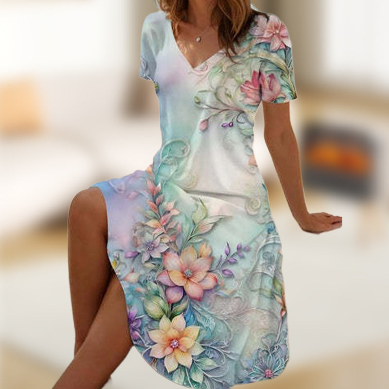 Комплектът включва: 1*широка дамска рокля с V-образно деколте и флорален принт