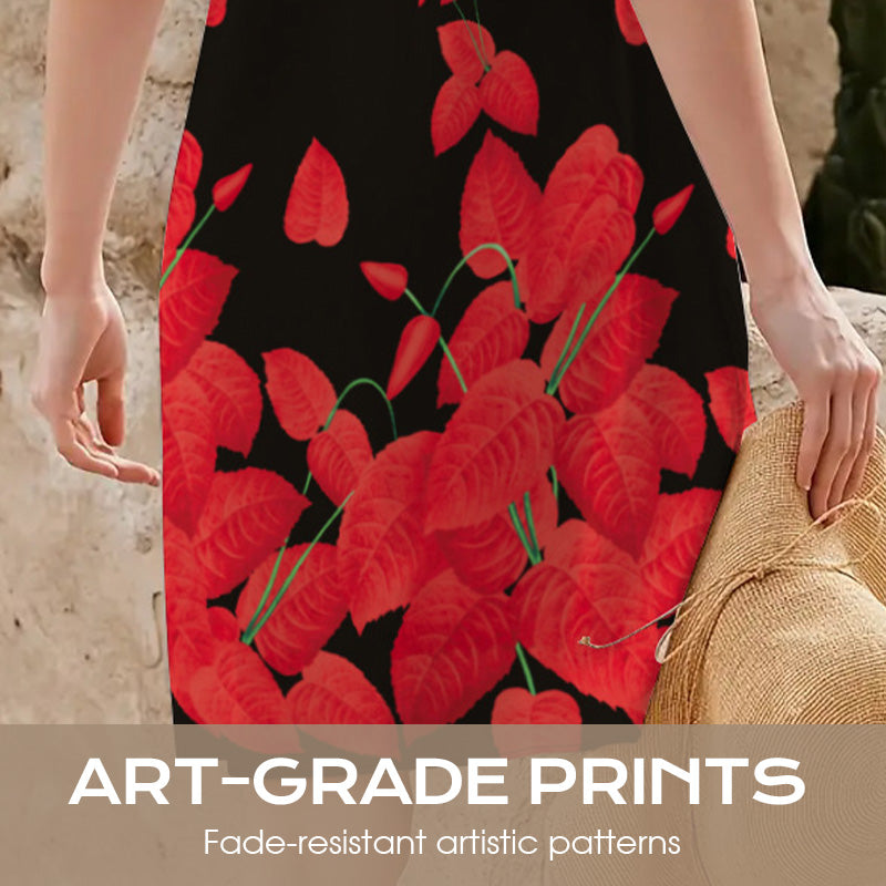 АРТИСТИЧЕН ДИЗАЙН НА ПРИНТИТЕ: Принтовете на всяка рокля са внимателно изработени, за да са трайни и устойчиви на избледняване. Разположението на десена осигурява перфектни пропорции, а стратегически разположените елементи на дизайна създават отслабващ ефект. За разлика от масово произвежданите щампи, този уникален дизайн едновременно се откроява и е универсален за широк спектър от поводи.