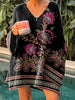 Жените реколта етнически флорални изкуство печат v-врата пуловер