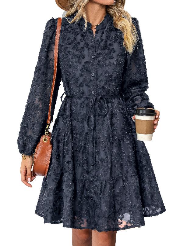 Пакетът включва: 1* Дамска рокля с дълъг ръкав с дантела жакардов печат