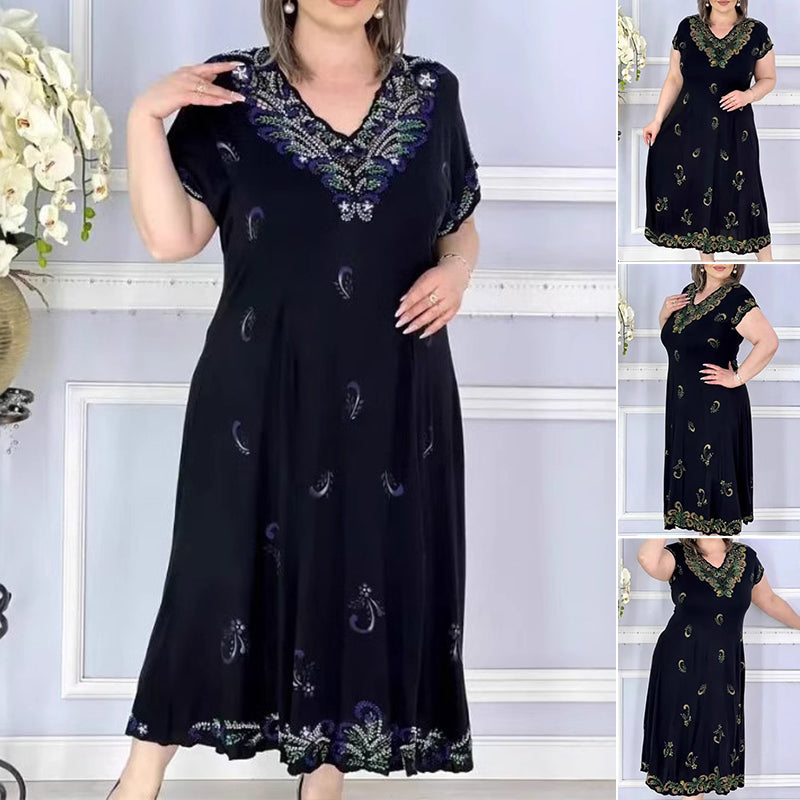 Пакетът включва: 1* Елегантни дамски рокли с хлабаво отпечатано V-образно деколте